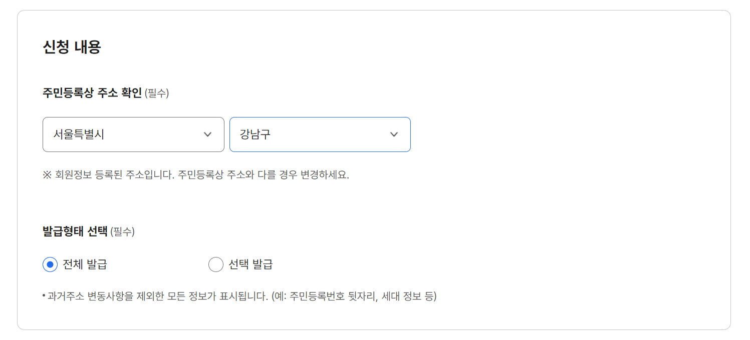 2. 주민등록상 주소 확인 / 발급형태 선택!