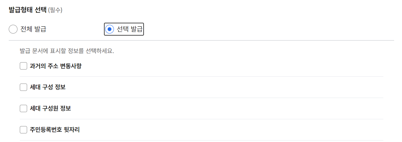 2.2 선택발급의 경우 문서에 표시할 정보 선택!
