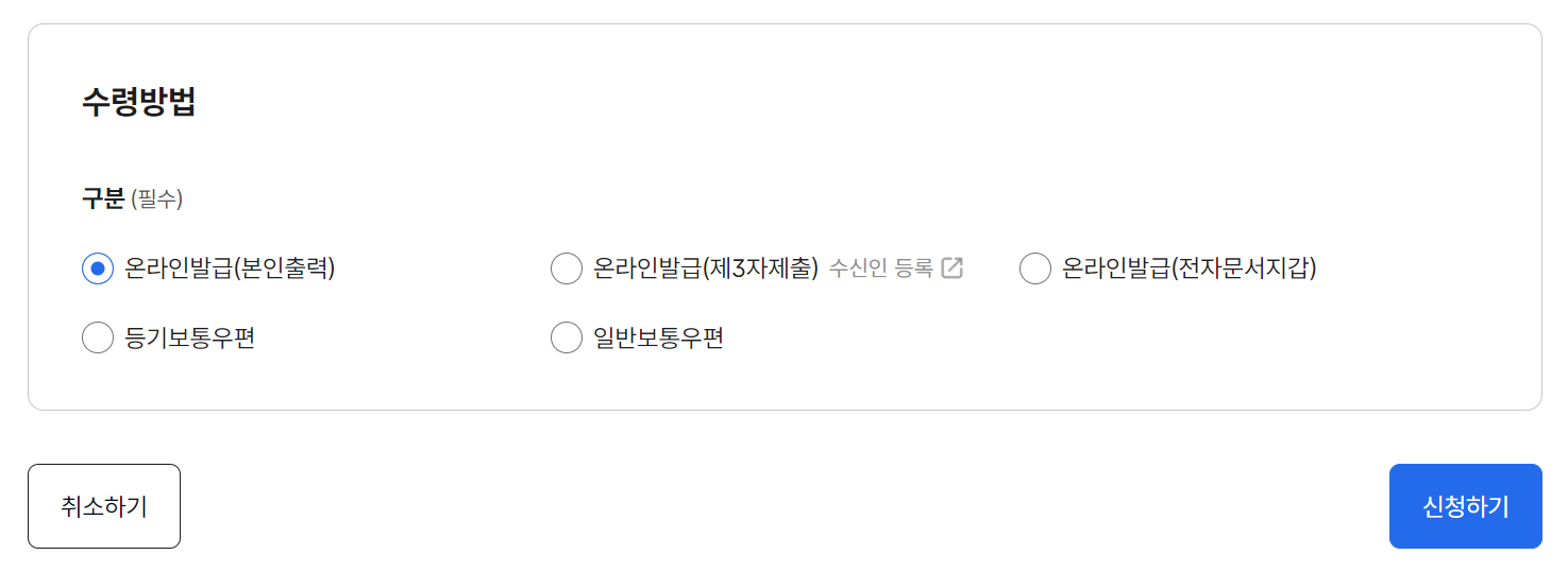 3. 수령방법 선택하여 발급 신청!